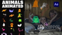 AE模板 30组卡通动物动画贴纸手绘动画可爱元素视频 AE工程 AE文件